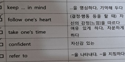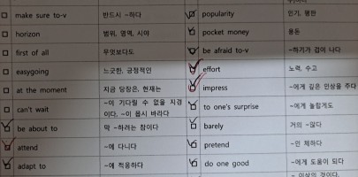 이번주는 영어단어 빡시게 외우기!! 빨간색으로 표시된 것들은 왠지 모르게 너무 헷갈렸다... 그치만 오늘은 쉬는날이라 기분이 ...