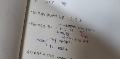 오늘부터 본격적인 진도가 나갔다.오늘은 명사적 의미 덩어리에 대해 배웠었고, 명사는 단어, 구, 절로 올 수 있다.또한,...